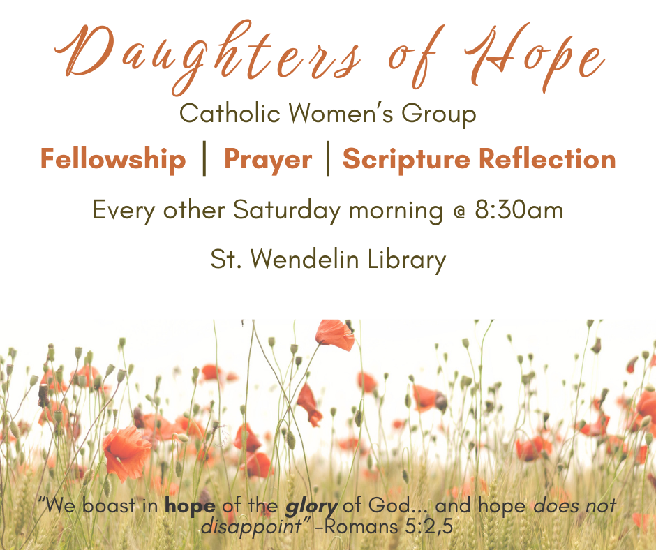 Bi-weekly on Saturdays at 8:30am in the St. Wendelin Library. Check the Parish Calendar for dates.